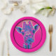 Una graciosa pose de una tierna jirafa - ¡sacarle la lengua! Funky colores alegres de neón de rosa y azul. Divertido estilo de arte pop de los años 60.