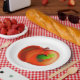 Gusano feliz en placas de Fiesta de papel de manzana roja - pintura MIGNED