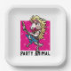 Un gracioso rockero de unicornio de 80 en placas de papel para tu glamorosa reunión. Utilice "Personalizar esta plantilla" para ajustar el texto predeterminado "FIESTA ANIMAL" y crear un accesorio fiesta único y personalizado. Con un unicornio de roca glam, accedido al máximo con guitarra estrella brillante azul, leggings de huellas de cebra y joyas grandes. Si los unicornios formaran bandas, tendría que ser glam rock.