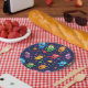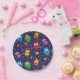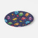 Este es un lindo y gracioso patrón de monstruos con globos y confetti en un fondo azul oscuro. Es un gran plato de papel para las fiestas de Halloween