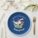 Este divertido plato de papel de cumpleaños de los chicos de tiburón presenta un fondo azul oscuro con un tiburón riéndose feliz con algas en el océano. La temática de cumpleaños bajo el mar dice "Feliz cumpleaños" y puedes personalizar este artículo con el nombre de tu elección.