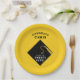 Graduación creativa felicita a los fiestas de la clase de 25 grados con línea divertida y tapa clásica negra de graduación con tassel dorado sobre fondo amarillo. Para el personalizar, edite el texto para agregar su nombre.