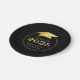 Elegante CLASE DE graduación personalizada DE 2025 planchas de papel de fiesta de graduación con tapa de graduación de oro metálico falsa y año con tu texto personalizado (mostrado con NOMBRE DE FELICITACIONES) en tu elección de color de fondo (mostrado con negro). OPCIONES DE PLACA: La muestra se muestra en la placa redonda de 7 pulgadas; en la página de pedidos hay disponibles otros tamaños y formas o cuencos. ASISTENCIA: Para obtener ayuda con la modificación o personalización del diseño, el cambio de color, el redimensionamiento, la transferencia del diseño a otro producto o si desea coordinar elementos, póngase en contacto con el diseñador ANTES DE PEDIDOS a través de la pestaña del MENSAJE de charla de Zazzle o envíe un correo electrónico a makeitaboutyoustore@gmail.com.