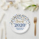 Clase de fiesta de graduación de Personalizable de 2020 platos en glamoroso estilo de confeti plateado y azul y elegante texto de estilo con letras a mano.