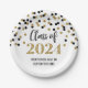 Clase de fiesta de graduación de personalizable de 2024 platos con un glamoroso patrón de oro y confetti negro y elegante texto de estilo con letras a mano.