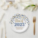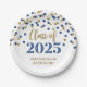 Clase de fiesta de graduación de personalizable de 2025 platos con un glamoroso patrón de oro y confeti azul y elegante texto de estilo con letras a mano.