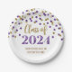 Plato De Papel Graduación de Confetti de oro morado 2024