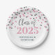 Plato De Papel Graduación de Confetti de plata rosa 2025