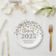 Clase de fiesta de graduación de personalizable de 2025 platos con un glamoroso patrón de confeti dorado y plateado y elegante texto de estilo con letras a mano.
