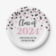 Clase de fiesta de graduación de personalizable de 2024 platos con un glamoroso patrón de confeti rosa y negro y elegante texto de estilo con letras a mano.