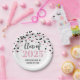 Clase de fiesta de graduación de personalizable de 2025 platos con un glamoroso patrón de confeti rosa y negro y elegante texto de estilo con letras a mano.