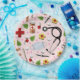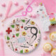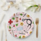 Platos creativos para la graduación de la escuela de enfermería para la celebración de la graduación de enfermería con suministros de salud y flores de fondo rosado.