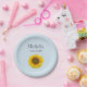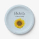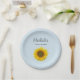 Clase de placa de papel de la fiesta de graduación 2025, con un girasol amarillo sobre un fondo azul pálido. La tipografía negra se puede personalizar con tu propio texto. Ideal para celebrar con tu graduado favorito.