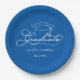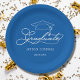 Un gorro de graduación, la palabra "graduado" en un guión elegante PLUS el nombre y año de tu graduación, todo en blanco en estas placas azules de papel de graduación - disponible en 2 tamaños. COINCIDIENDO elementos y más colores en nuestra colección.
