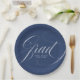 Añade un toque personalizado a tu fiesta de graduación con nuestros platos de papel para graduación de personalizados. Las placas de papel de graduación presentan "Grad" en un elegante guión de caligrafía blanca con un fondo marino. Personalice las matrículas agregando el nombre del graduado y el año de graduación.