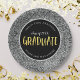 Plato De Papel Graduación de Purpurina de Plata Faux