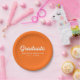 Añade un toque personalizado a tu fiesta de graduación con placas de papel para personalizados de graduación. Las elegantes placas de papel cuentan con "Graduado" en letras en negrita y blanco con un fondo naranja o color de su elección. Personalice las matrículas de naranja agregando el nombre y el año de graduación.