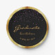 Una moderna y moderna celebración de graduación. Un fondo negro de moda con un toque rosa y violeta y un marco de oro falso. El texto: El graduado está escrito con un guión de gran tamaño con letras a mano. Plantilla para un nombre y un año. Las servilletas coincidentes están disponibles en nuestra tienda.