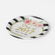 La clase adaptable de la fiesta de graduación de 2017 placas en modelo blanco y negro clásico de las rayas, vintage rosado de la acuarela florece, y los detalles del oro.