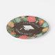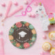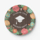 Placas de papel florales rústicas para una celebración de la graduación. Estas placas de papel bonitas ofrecen una guirnalda de la flor contra un fondo de madera del grano. Las flores son rosa coralino, amarillo caliente, verde menta, y naranja. Dentro de la guirnalda floral, un casquillo blanco de la graduación. Personalice las placas de papel con el año y el nombre del graduado.