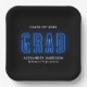 Platos modernos de papel de graduación con "Grad" mostrados en letras azules de neón con fondo negro (o color de su elección). Personalice las matrículas de neón con el nombre del graduado, el nombre de la escuela y el año de graduación. ¡Las placas personalizadas de papel para la graduación son perfectas tanto para fiestas de bachillerato como universitarios!