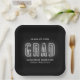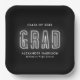 Platos modernos de papel de graduación con "Grad" mostrados en letras blancas de neón con fondo negro (o color de su elección). Personalice las matrículas en blanco y negro con el nombre del graduado, el nombre de la escuela y el año de graduación. ¡Las placas personalizadas de papel para la graduación son perfectas tanto para fiestas de bachillerato como universitarios!