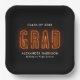 Platos modernos de papel de graduación con "Grad" mostrados en letras de neón naranja con fondo negro (o color de su elección). Personalice las matrículas de neón con el nombre del graduado, el nombre de la escuela y el año de graduación. ¡Las placas personalizadas de papel para la graduación son perfectas tanto para fiestas de bachillerato como universitarios!