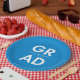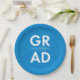 Platos de graduación personalizado con "Grad" en letras en negrita y blanco con un fondo azul o color de su elección. Personalice las matrículas de papel de graduación agregando el nombre y el año de graduación. Las placas de graduación personalizadas son perfectas tanto para fiestas de bachillerato como universitarios.