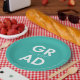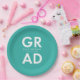 Platos de graduación de personalizados con "Grad" en letras blancas en negrita con un fondo turquesa o color de su elección. Personalice las matrículas de papel de graduación agregando el nombre y el año de graduación. Las placas de graduación personalizadas son perfectas tanto para fiestas de bachillerato como universitarios.