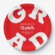 GRAD en negrita con curvas de letras blancas alrededor de los bordes de estas placas de papel rojo del partido de graduación - disponible en 2 tamaños. Felicitaciones por encima del nombre de su graduado y la Clase de abajo. La adición perfecta a la decoración de la mesa para los fiestas de posgrado. **SUGERENCIA: Haga clic en el botón PERSONALIZAR; haga clic en el cuadro COLOR de la parte superior derecha; introduzca su código hexadecimal de color en el cuadro #xxxxxx para que coincida con los colores de su escuela. CONSULTE TODA LA COLECCIÓN de combinaciones de colores prehechas y más en nuestra tienda.