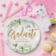 Hermosa floral pastel con planchas de fiesta de graduación de color verde acuático incluye letras en bonito de color dorado y el nombre y año de clase del graduado con un elegante fondo blanco. Comprar esta tienda para coordinar los artículos de la fiesta de graduación 2024 y opciones de color adicionales!