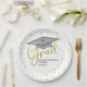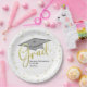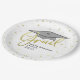 Este diseño cuenta con un fiesta moderno y sencillo graduado, con una tabla de mortero de tapón de graduación, para estudiantes de secundaria o universitarios, con una clase de nombre personalizado personalizada de su año, un diseño moderno y moderno de moda para escritura de caligrafía, una vajilla de fiesta de grado, suministros para fiestas de graduación, un fiesta de confeti de oro minimalista simple, un diseño moderno y simplista, un plato de postre para graduación de graduación