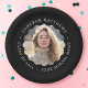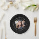 Placas de papel de graduación que incluyen tu foto dentro de un borde ondulado de marco y tu texto personalizado alrededor de la foto. Texto blanco sobre fondo de color negro o personalizado.