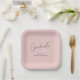 This modern graduation paper plates feature trendy, handwritten-style typography and space for the graduate’s name on a dusty pink background.