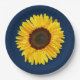Plato De Papel Gran girasol amarillo en la capa de fondo azul de