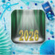 Gold 2026 text in the spotlight on stage with a green curtain background for a graduation party