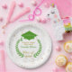 Paper plates for that special high school or college graduation party with personalized text. Features image of a green grad cap and laurel wreath accented with faux gold confetti. See matching napkins and other color groups also available in this same design