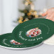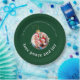 Make your family Christmas gathering memorable with this festive paper plate featuring your photo in a playful ornament frame. The classic "Love, Peace and Joy" message in elegant typography on classic forest green background brings heartfelt warmth to your holiday table. Fully customizable with your family photo and name. Perfect for creating joyful memories at Christmas parties, family dinners, and holiday celebrations.