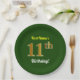 Plato De Papel Green, Faux Gold 11th Birthday + Custom Name