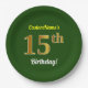Plato De Papel Green, Faux Gold 15th Birthday + Custom Name