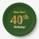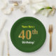 Plato De Papel Green, Faux Gold 40th Birthday + Custom Name