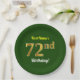Plato De Papel Green, Faux Gold 72nd Birthday + Custom Name