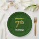 Plato De Papel Green, Faux Gold 7Cumpleaños + Custom Name