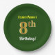 Plato De Papel Green, Faux Gold 8Cumpleaños + Custom Name