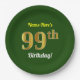 Plato De Papel Green, Faux Gold 99th Birthday + Custom Name