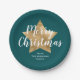 Plato De Papel Green Faux Gold Star Feliz Navidad