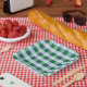 Plato De Papel Green & Lavender Gingham Stripes Karo Pattern