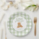 Celebrate your little one's One Golden Year in sweet puppy style with this round paper plate. A green gingham border surrounds a scalloped center that features a hand drawn Goldendoodle puppy and editable text for your little one's name and first birthday date. Perfect for cake slices, snacks, and photo ready table settings at any Goldendoodle themed party.
