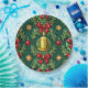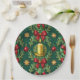 Plato De Papel Green Pattern Gold Candle Poinsettia Flower