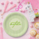 Plato De Papel Green Stripes Matcha Scripted Baby Shower